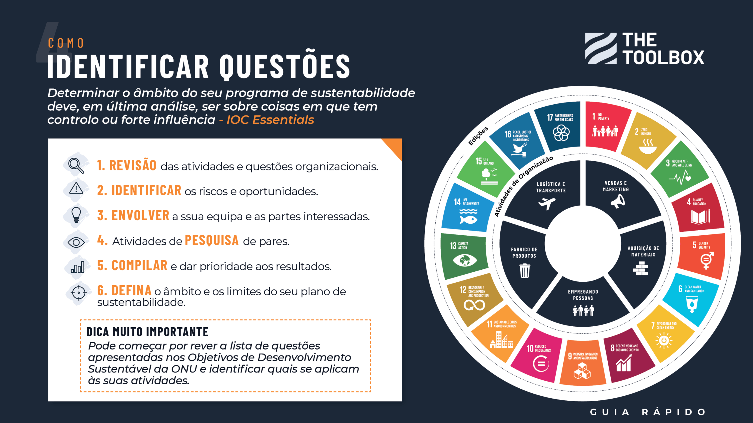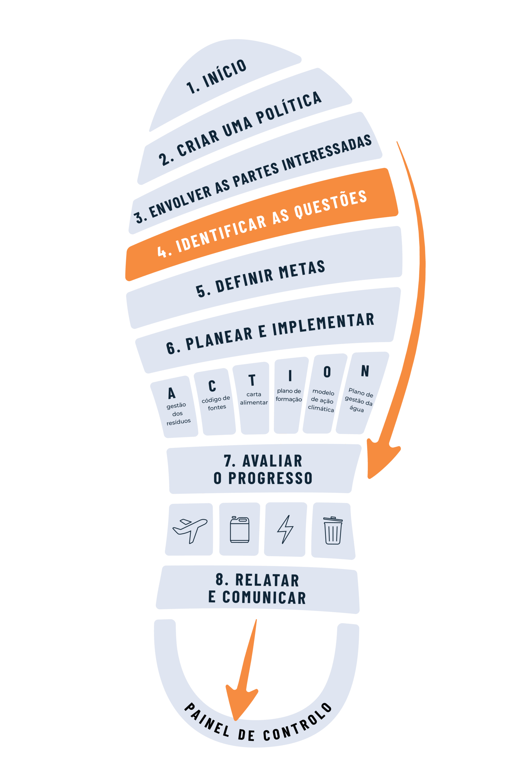 O quarto passo no processo de estabelecimento de um programa de sustentabilidade é identificar problemas.